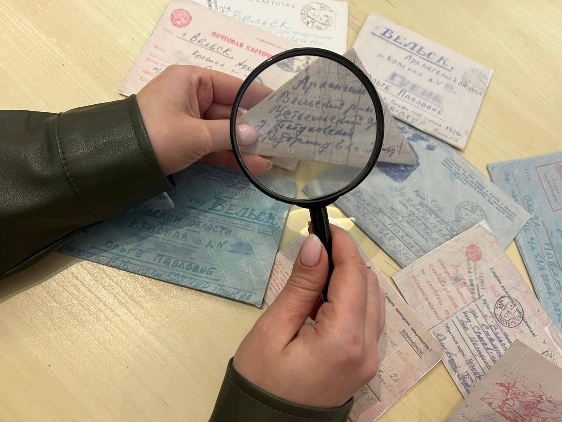 Занятие позволит подробно изучить разновидности писем, которые приходили с фронта в годы Великой Отечественной войны в город Вельск. Участники смогут изучить точные копии писем, познакомиться с их особенностями, узнать, чем отличаются почтовые карточки от писем-секреток, почему письма приходили не только в типографских конвертах, но и в самодельных, куда нужно было прийти в городе, чтобы отправить письмо на фронт, кто такой цензор и в чем заключалась его работа.